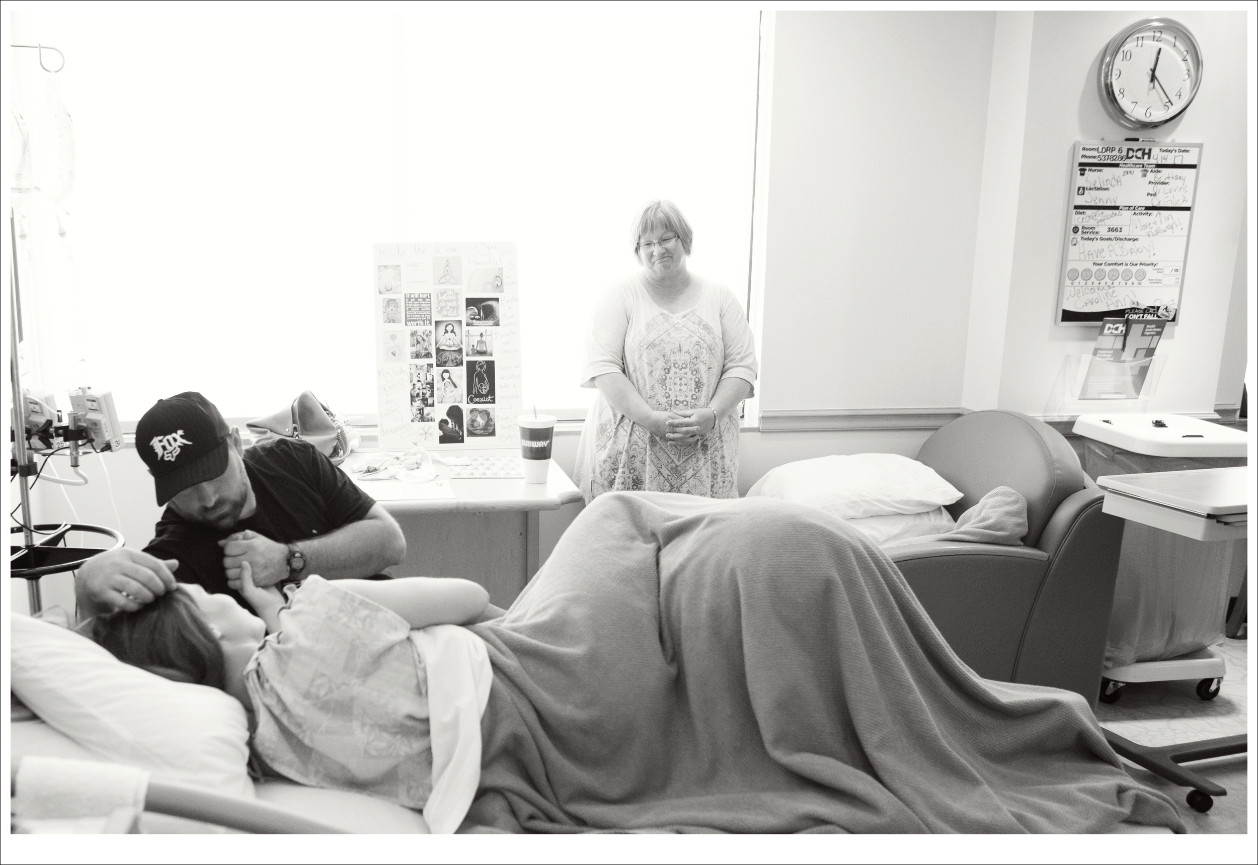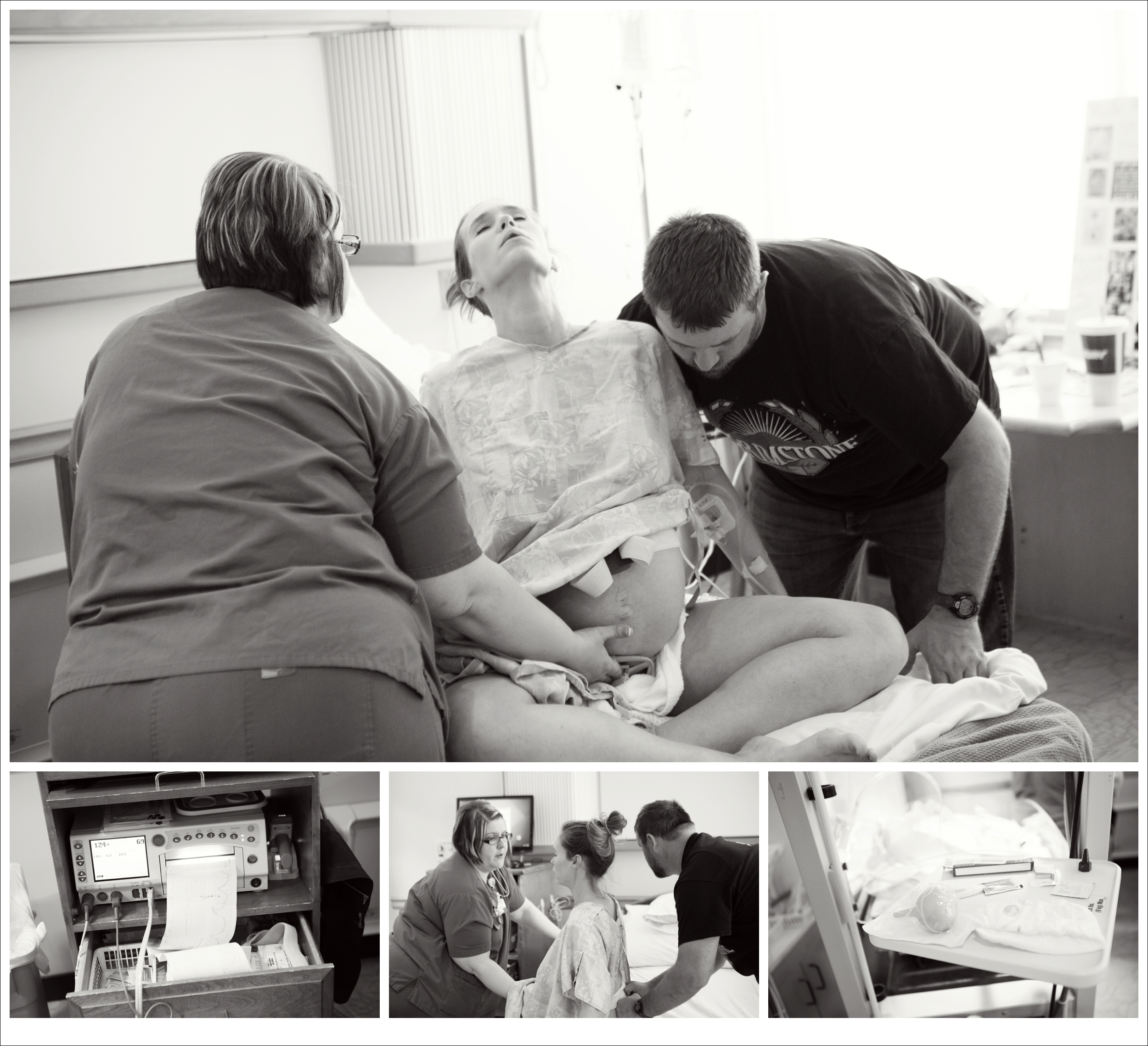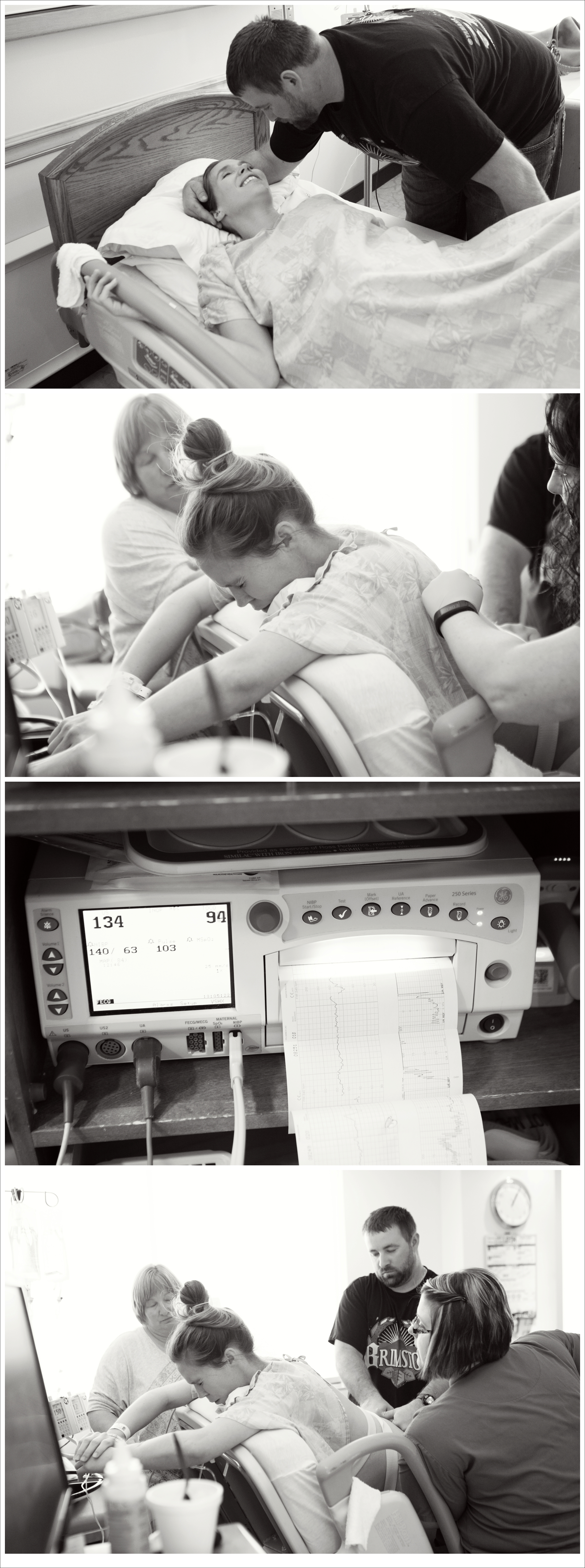 I told her I really felt like I should be pushing. I was leaned over the back of the bed and could really feel my body pressuring me to push. I waited through a few more contractions before moving — she checked again. Almost Complete. The doctor was called in to assess and assist. The baby cart was wheeled over and the lights turned on. The doctor checked me and said she was going to assist in getting me fully dilated during my next contraction. I’d been here before. She did this with Evelyn. I was prepared and comfortable knowing what was happening next. She was gowning up when I felt another one coming. ‘She’s missed her window,’ I thought to myself.